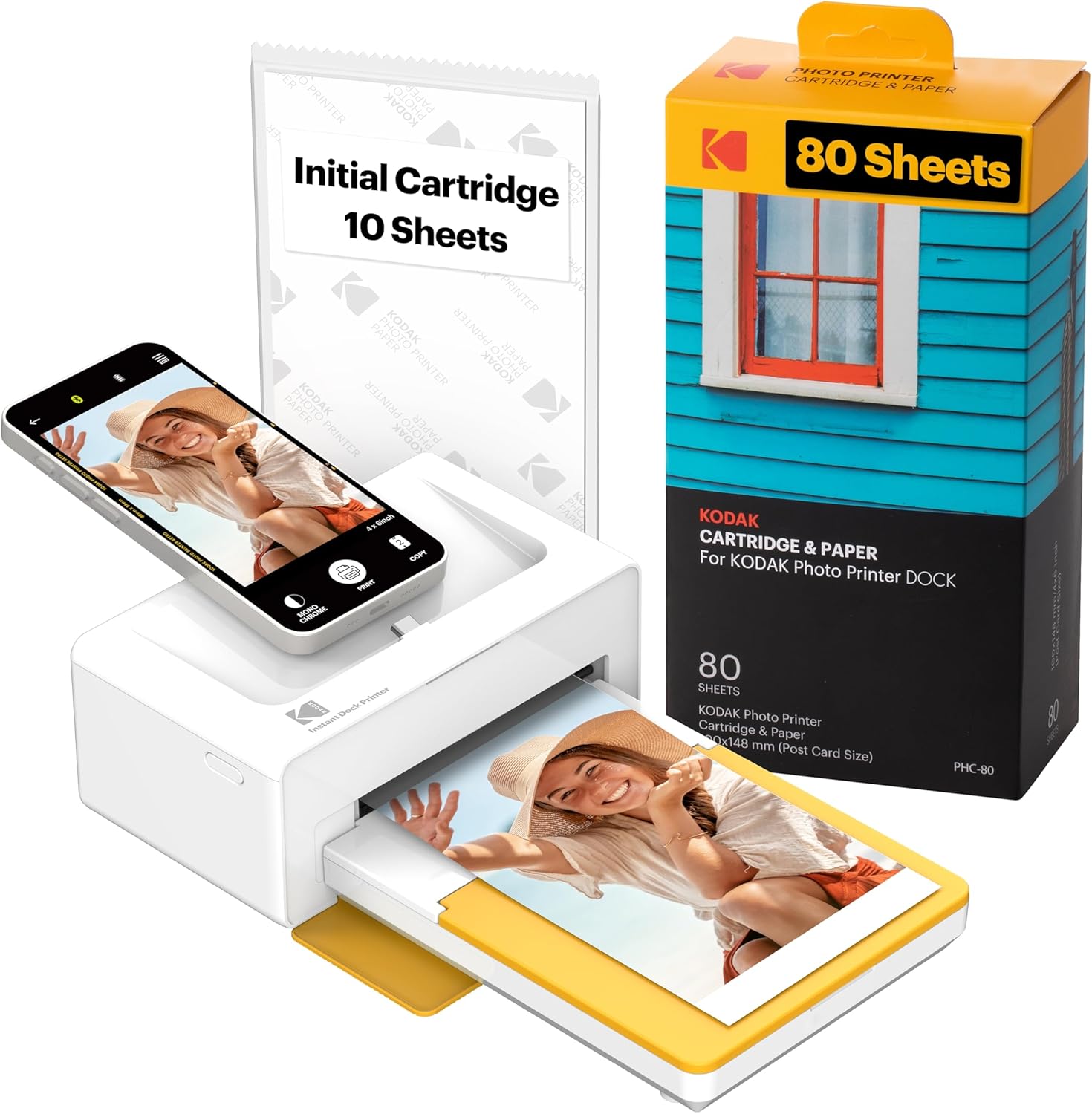 Official Product Description: Kodak Dock Plus uses 4PASS Technology to print flawless photos. It prints in layers of color with a laminating process so it’s fingerprint proof and water-resistant. Photos last over a 100 years.